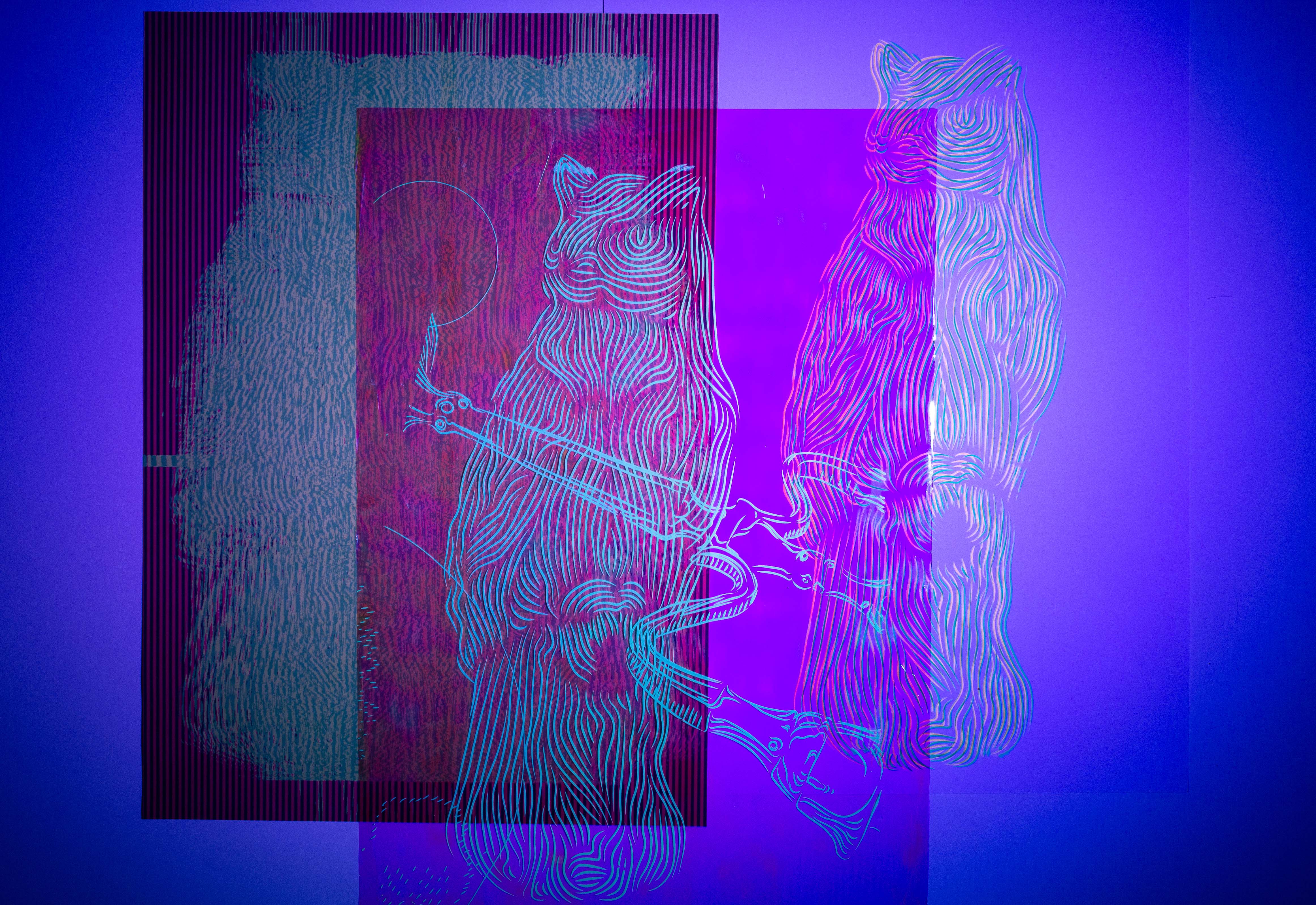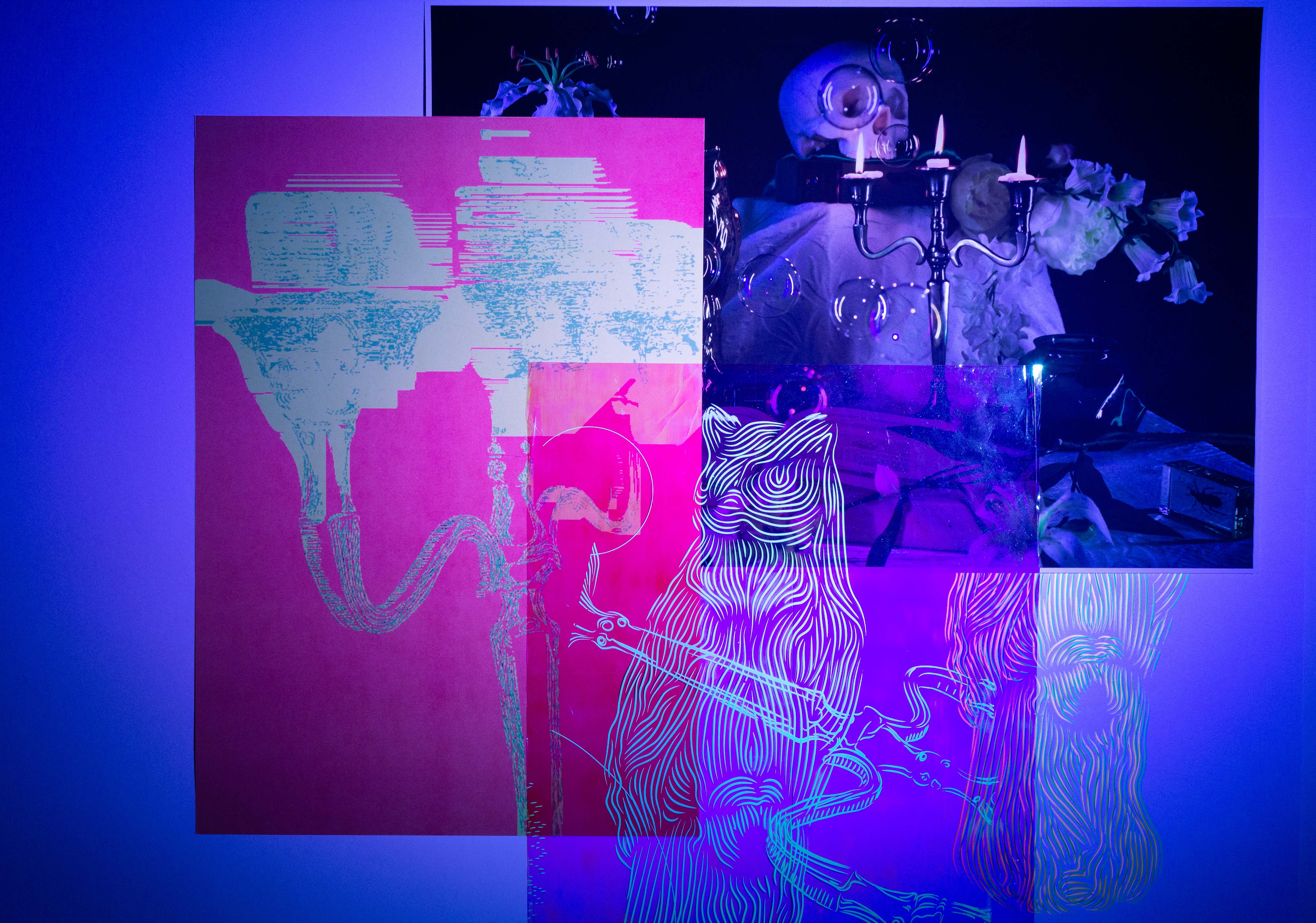 I used photographing, screenprinting and real-time setdressing to create a multi-layered live performance. All based on the good old Vanitas theme.